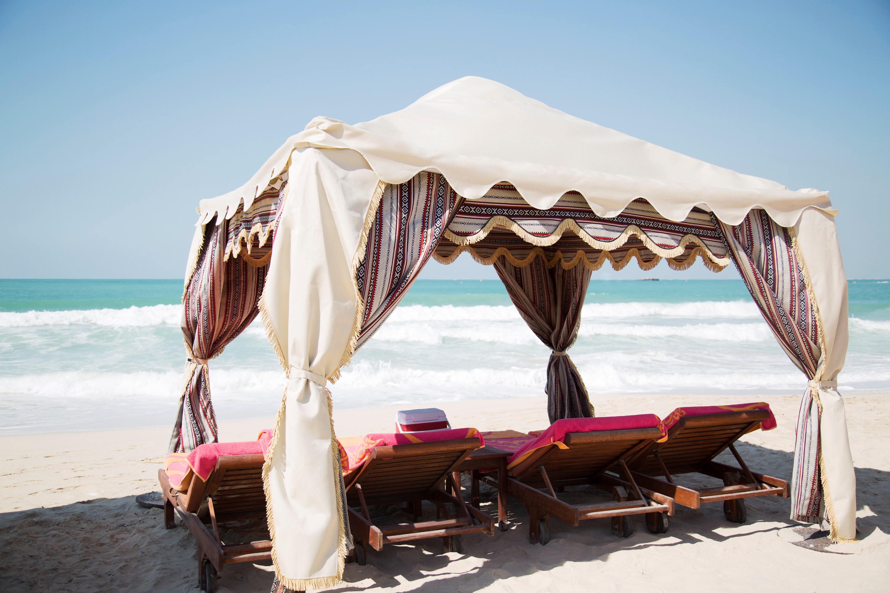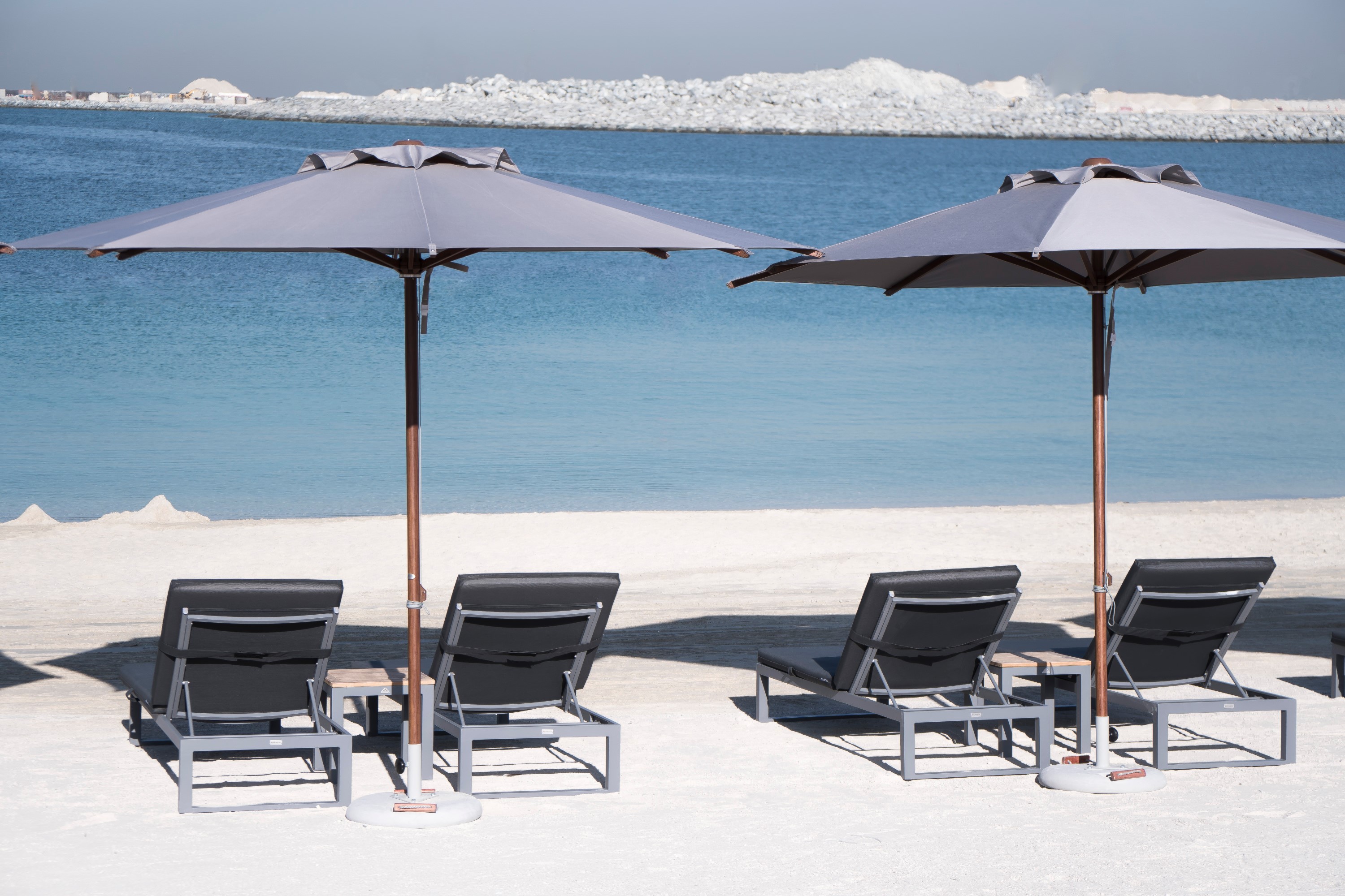 The quality of outdoor beach furniture is really important especially in Dubai because of unusual climate conditions. Parasol furniture offers beach umbrellas and beach sun loungers that are resistant to the heat and humidity of the Middle East. Besides, our beach furnishings don’t need much maintenance. However, if you look after it, it will last much longer. But no worries, we provide maintenance service for beach design furniture – and it’s absolutely convenient for our customers because we come to their place, take the furniture, wash and oil it and bring it back.