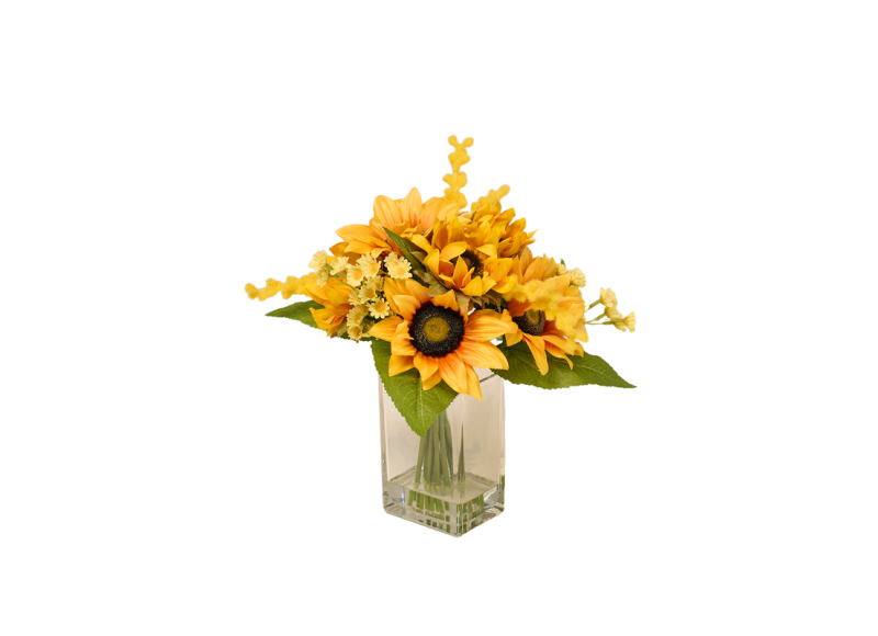 1x Artificial Sunflower Bouquet in Glass Vase
