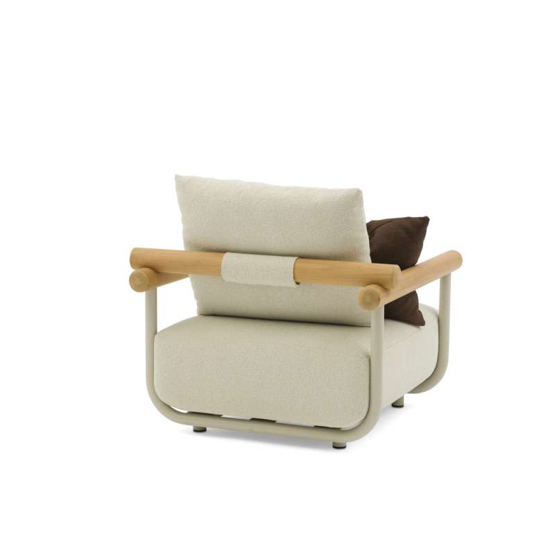 Sleek lines and wooden armrests add warmth and a touch of elegance