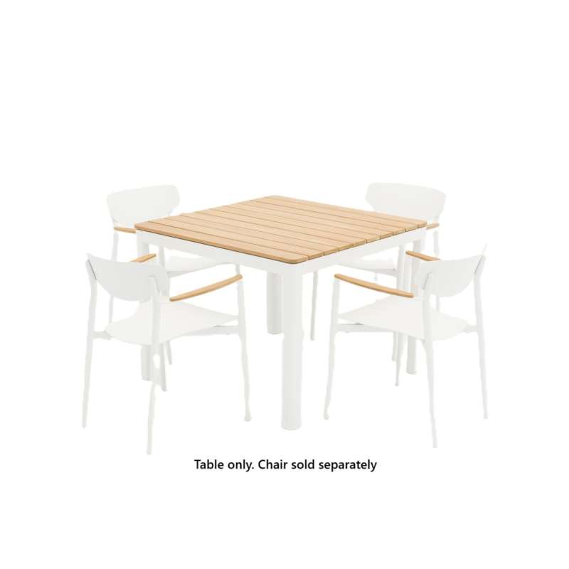 Our outdoor furniture is made of high quality, solid material (powder-coated aluminum legs, teak top) to resistant rusting, chipping, fading and scratching and to provide longevity and durability to the furniture