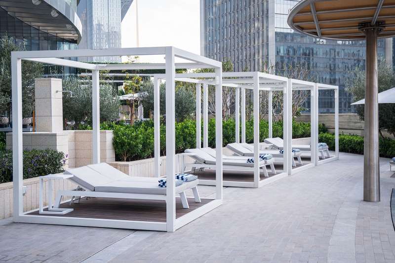 poolside cabanas and sunbeds